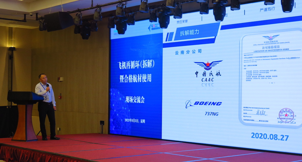 发言代表中东航技术云南分公司副总李进就国内“飞机的适航性拆解”做了解读,他谈到国内MRO开展拆解工作刚刚开始起步,但对于流程的规范及工程的质量把控是符合国际较高水准的,在人力成本可控的国内工程体系下,可以做到拆机件较高的可循环使用率。